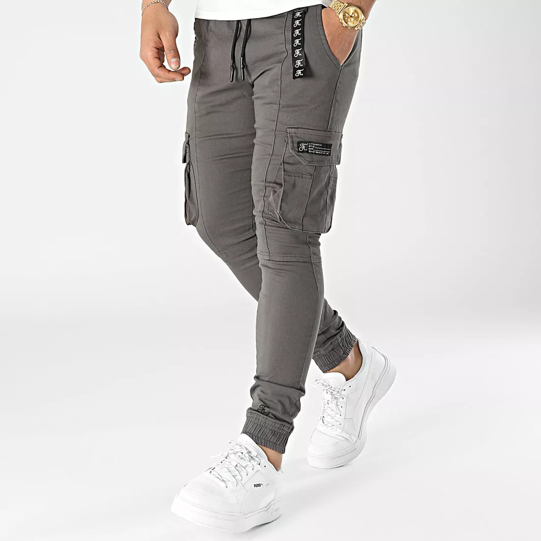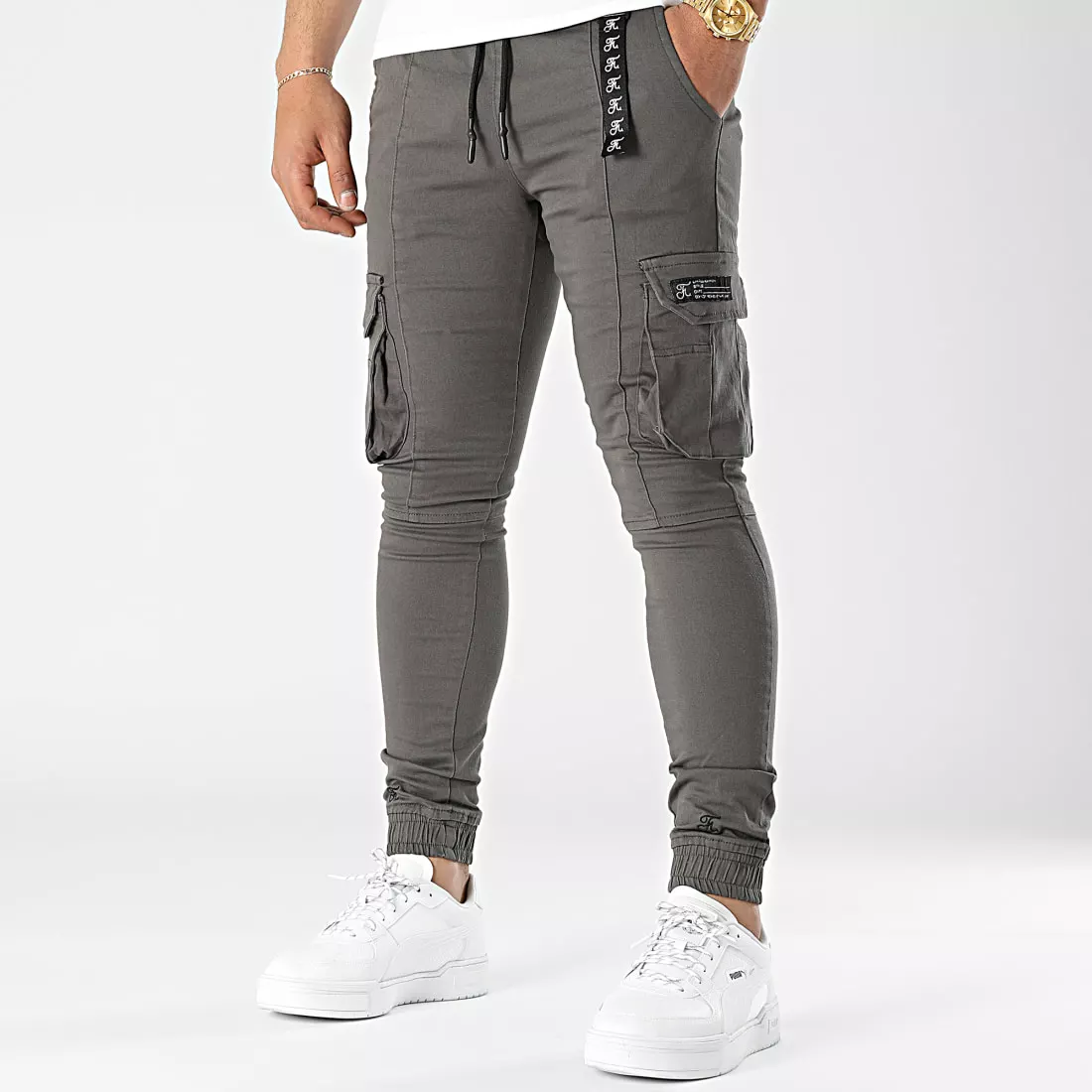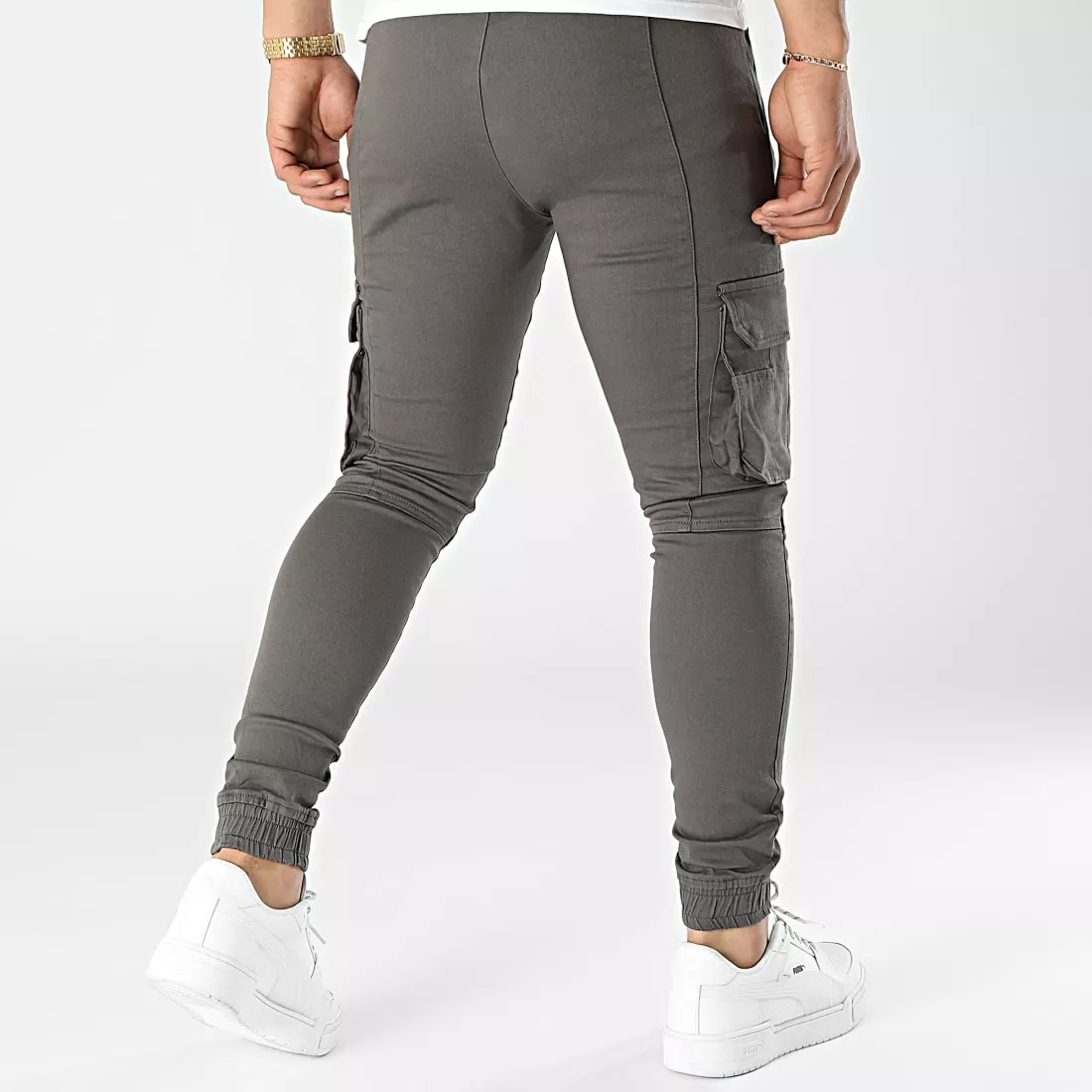 • Jogger pant en coton stretch avec poches cargo à boutons pression