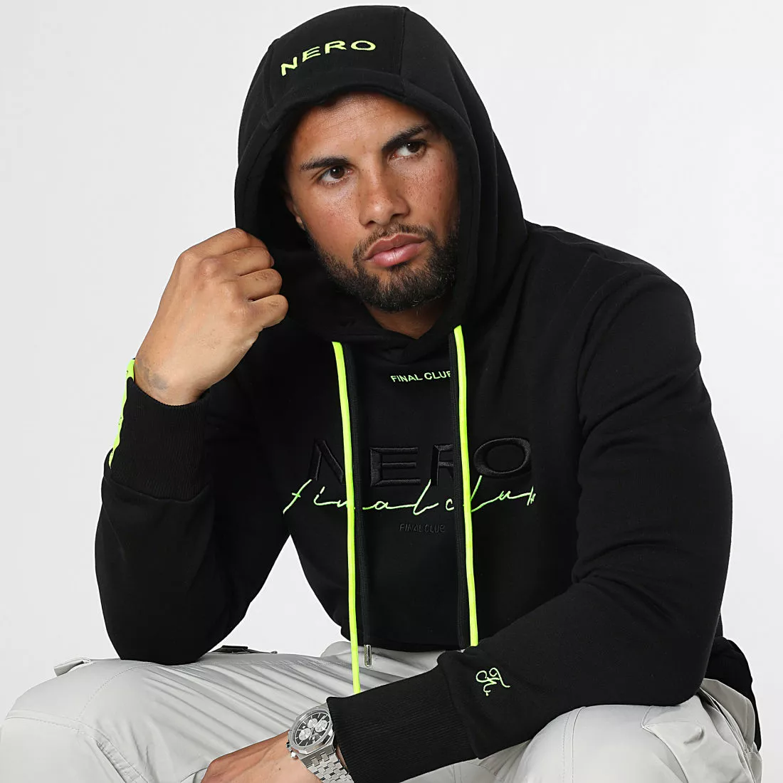• Sweat capuche brodé visuel NERO sur l’avant