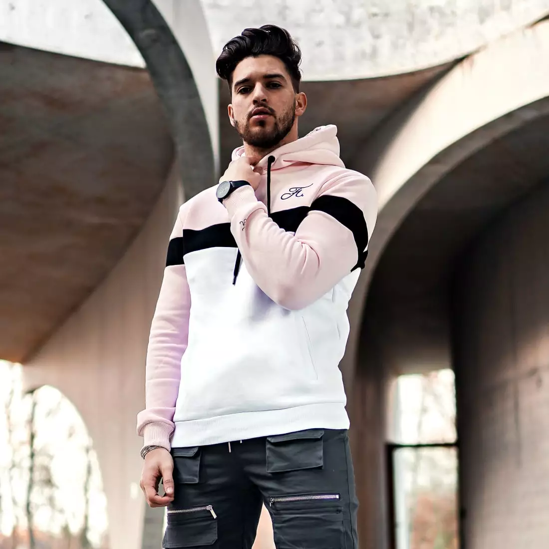 • Sweat capuche tricolore à poches
