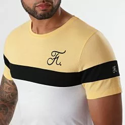 Nouveau 😍 Tee 👕 Shirt Tricolore Avec Broderie 671 Blanc Noir Jaune Pastel de Final Club ❤️