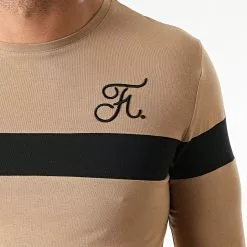 Meilleur prix 🌟 Tee 👚 Shirt Manches Longues Bicolore Avec Broderie 781 Camel Noir de Final Club 💯