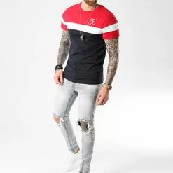 Offres 🔥 Tee 👚 Shirt Tricolore Avec Broderie 008 Bleu Marine Blanc Rouge de Final Club 🛒